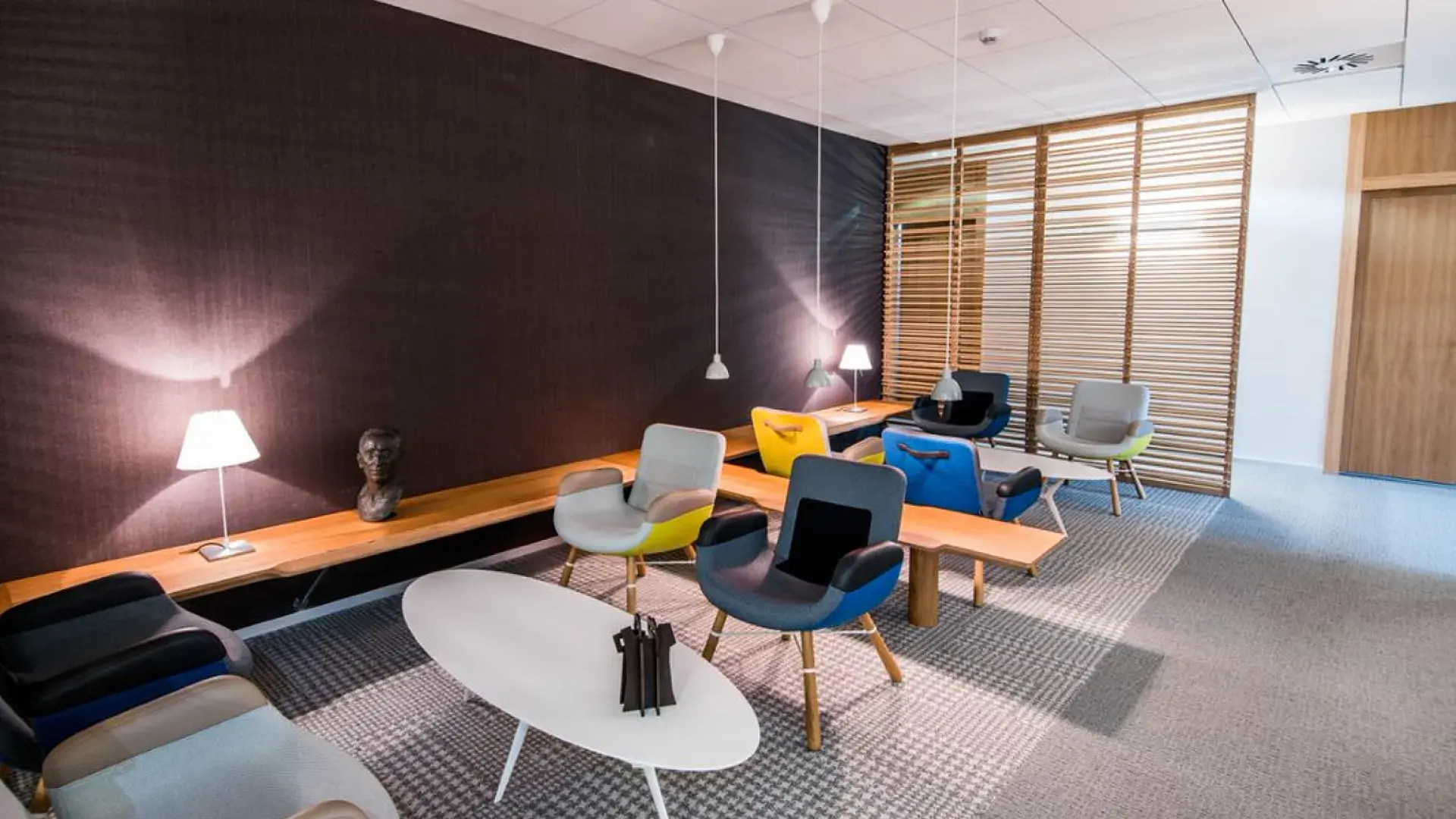 The comprehensive refurbishment was undertaken with the utmost respect for the original architectural concept of the building, which is staggered on the hillside, generating courtyards that enhance the relationship with the environment, and which has allowed us, in a very natural way, to adapt the headquarters to the new forms of teamwork, in addition to implementing more efficient and sustainable air conditioning systems, and improving the thermal insulation of its envelope. The intervention has included the general management and assembly hall areas that make up the gallery of sculptural and pictorial works that are part of the Entity's heritage.