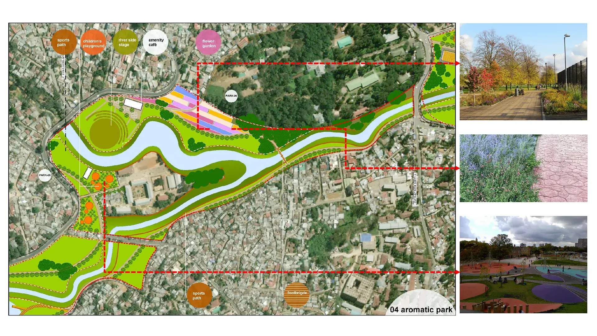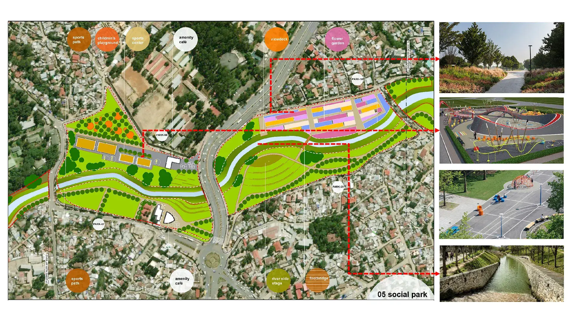 The master plan creates a public waterfront along the river in the section known as IP 08. The planned waterfront extends for 6.4 km within the city on both banks. The Master Plan organises a new riverfront as a large public space that includes an extensive network of parks, riverside promenades, housing, markets, cultural institutions, recreational facilities and commercial developments for the city.