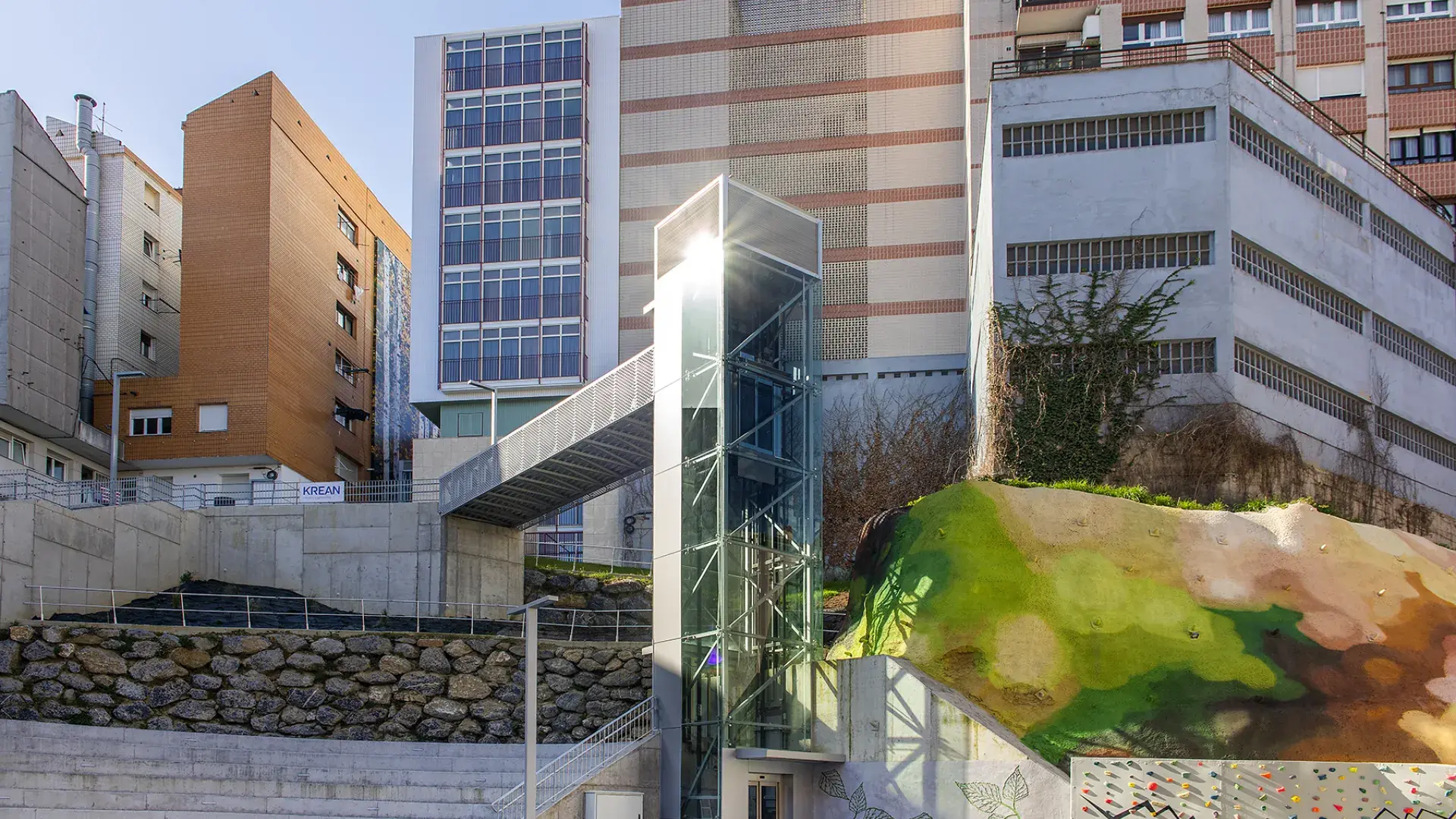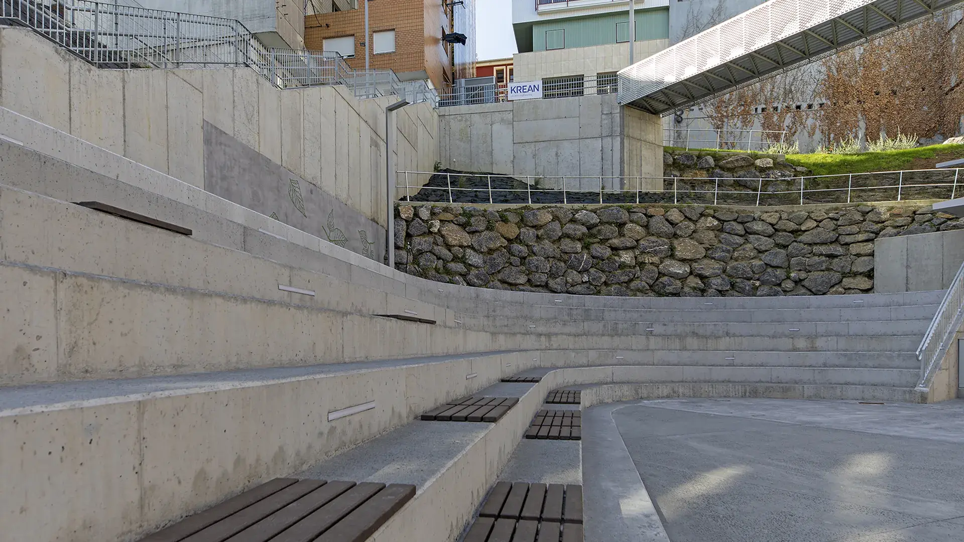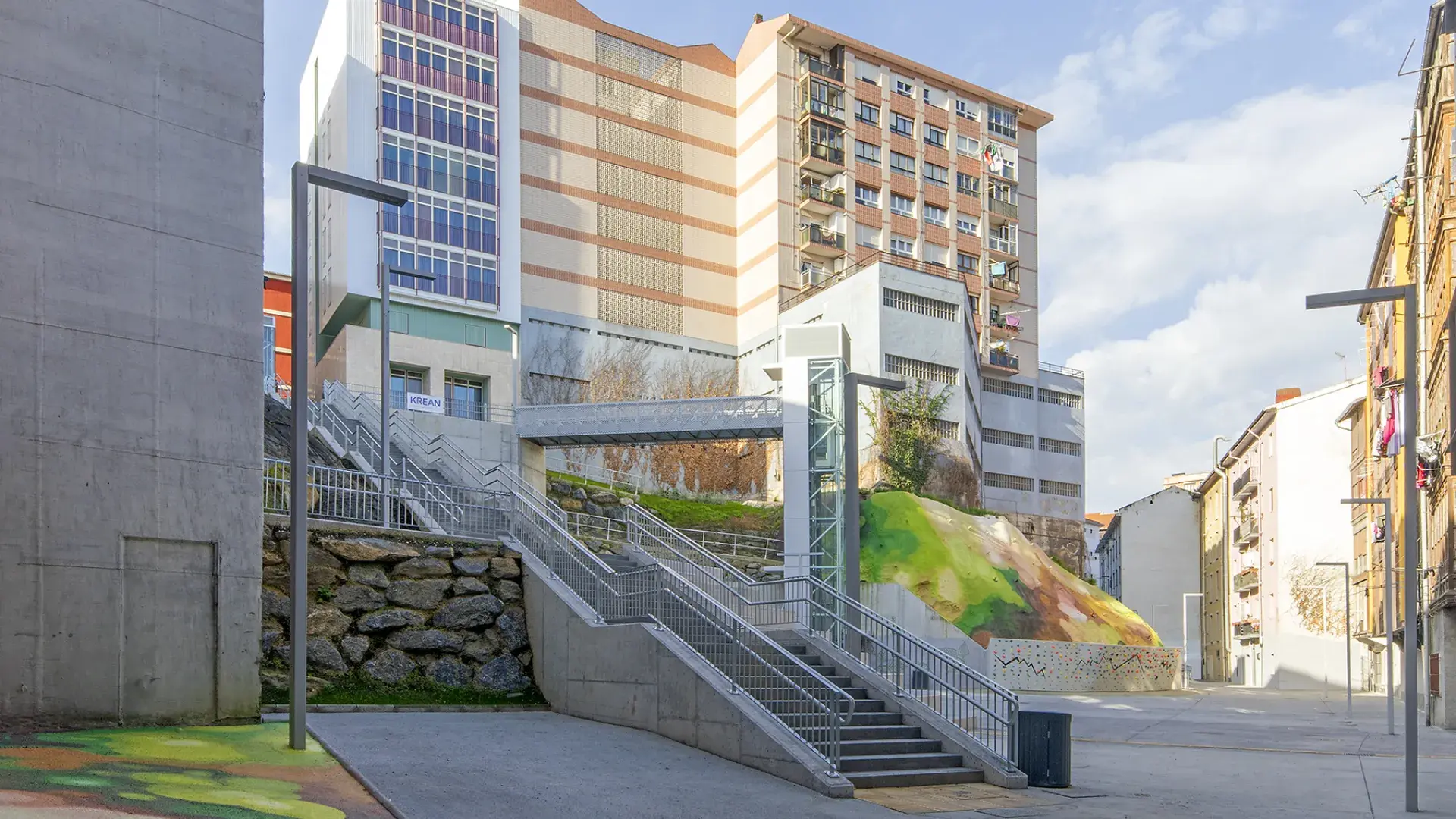 The latest work has consisted of the execution of the last two phases of UE1 of the ARI Txabarri-El Sol, and are the culmination of a long process of work on an urban regeneration project in which, faced with the possibility that the space created would become a marginal area, the aim has been to create a space that helps to strengthen social ties and a sense of belonging to the neighbourhood. In addition, the aim has been to avoid competing with other urban spaces in the area, with teenagers in mind as potential users. A bouldering wall and bleachers have been built in the square to allow for outdoor activities, with open Wi-Fi, and a space dedicated to neighbourhood activities that also has outdoor space in the square itself. The space also allows for the possibility of opening terraces to the bars and cafes located there.