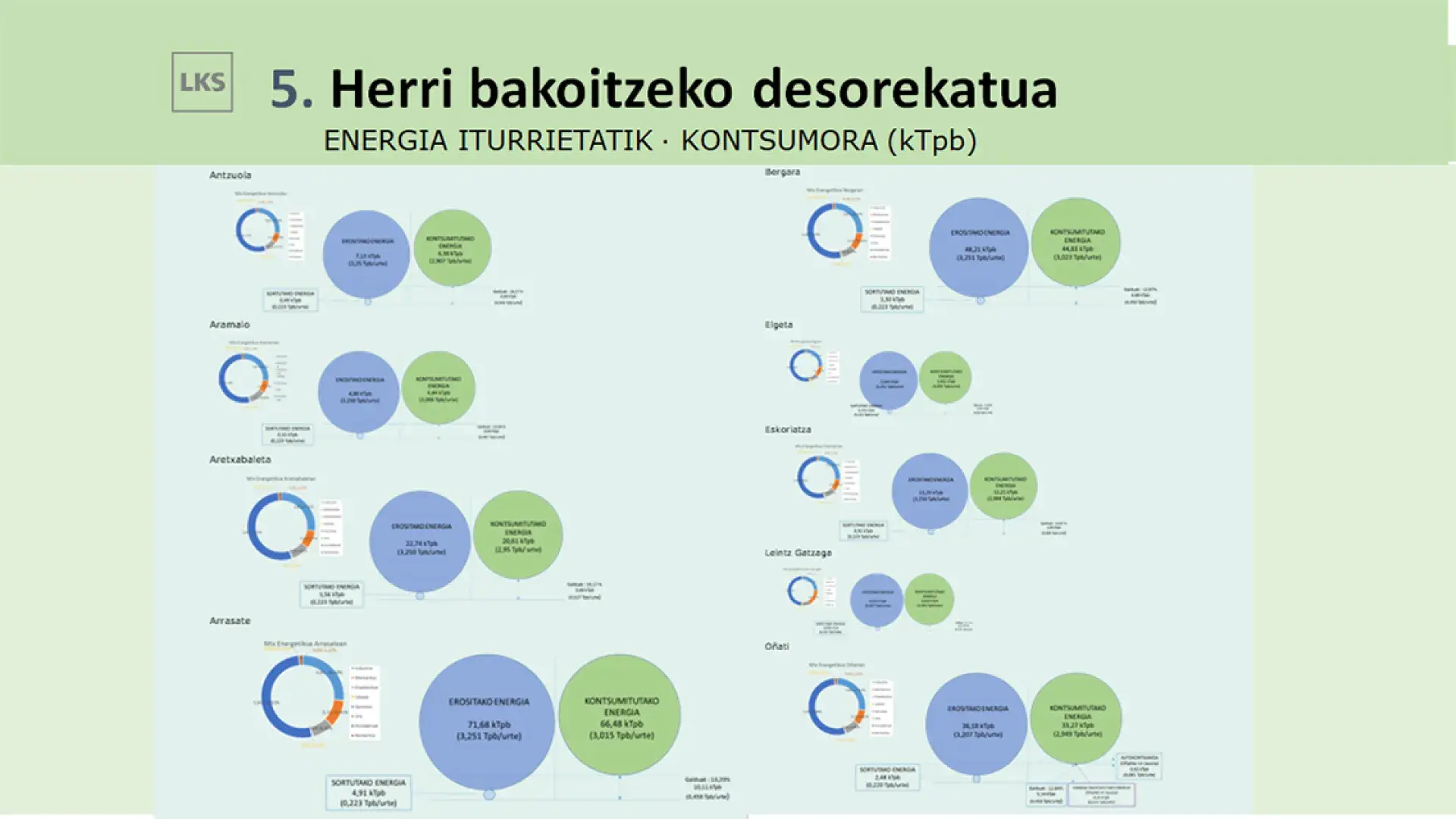 The project was created in order to carry out a transformation of the Alto Deba area, so that through the participation of citizen associations, companies and the authorities, the necessary measures can be taken so that in the future, and taking 2030 as the target, measures can be adopted to reduce energy consumption and emissions generated by the 7 main sectors of the area, including: Industry, Commerce, Buildings, Administration, Water, Solid Urban Waste and Transport.