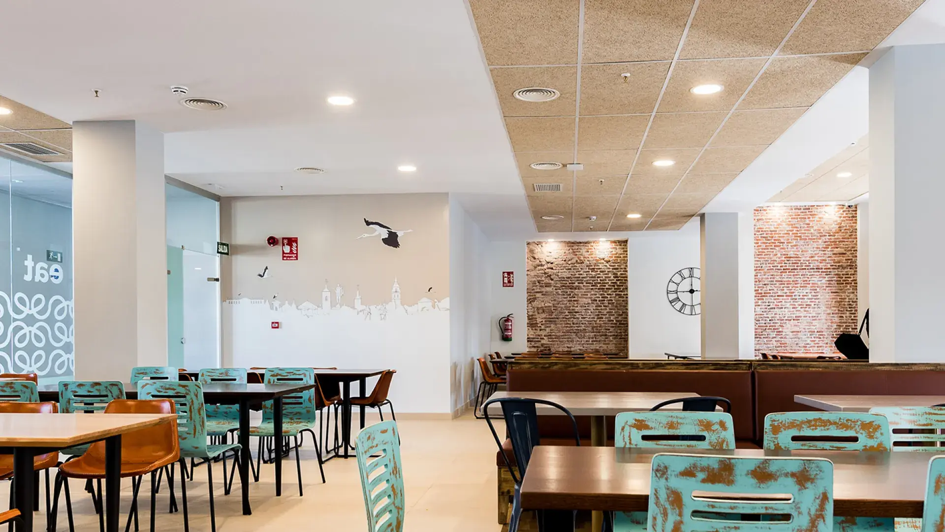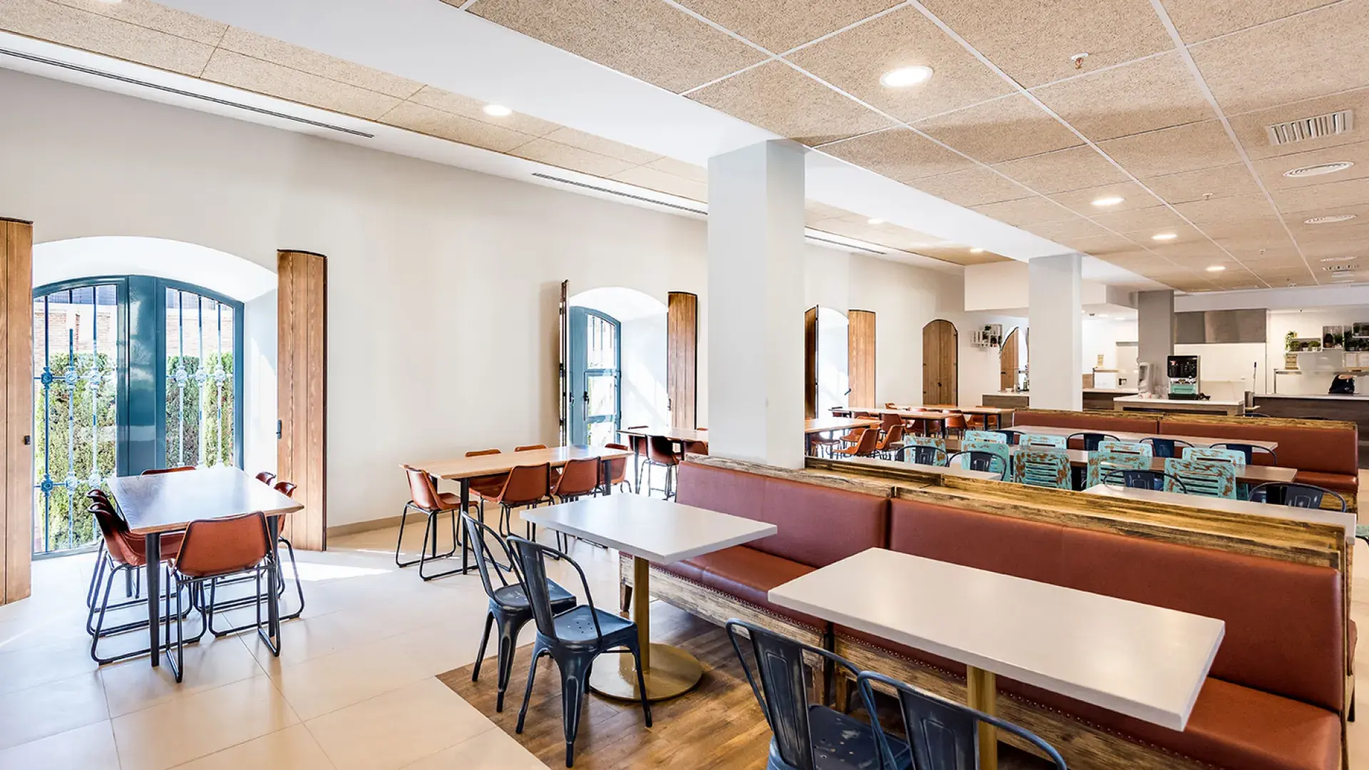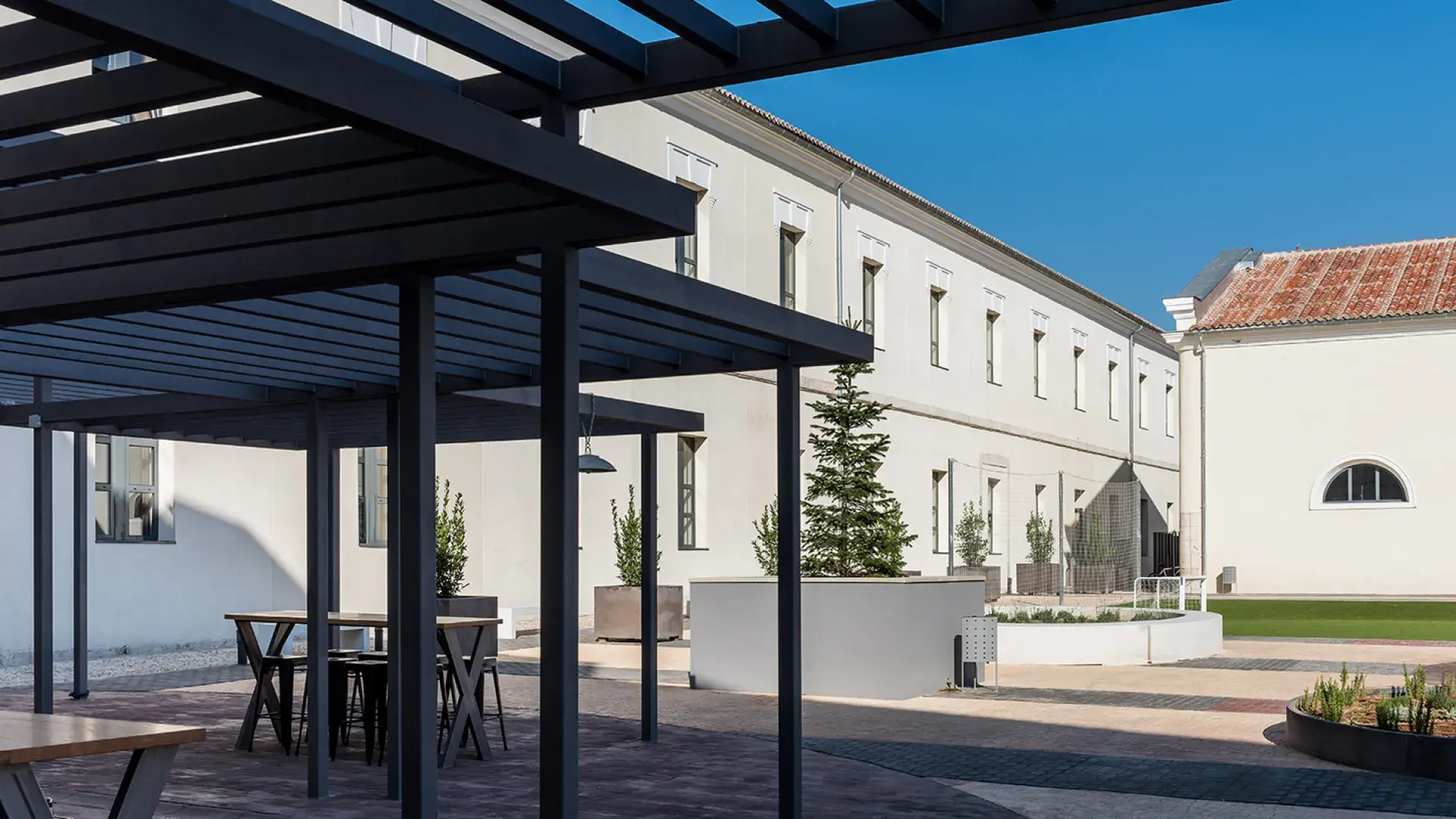 The building is made up of a "U" shaped body, with the main entrance from Colegios street in the centre. Inside, a private University Courtyard is formed, linked to the surrounding building, which will be used as a university residence and spaces linked to it: spaces for theatre and activities (seating area), cafeteria terrace, relaxation area, outdoor activities area. Building I, the former riding school, has also been recovered as a building to house community activities: gymnasium, multi-purpose court and facilities and services rooms. The aim is to give this space a certain flexibility.