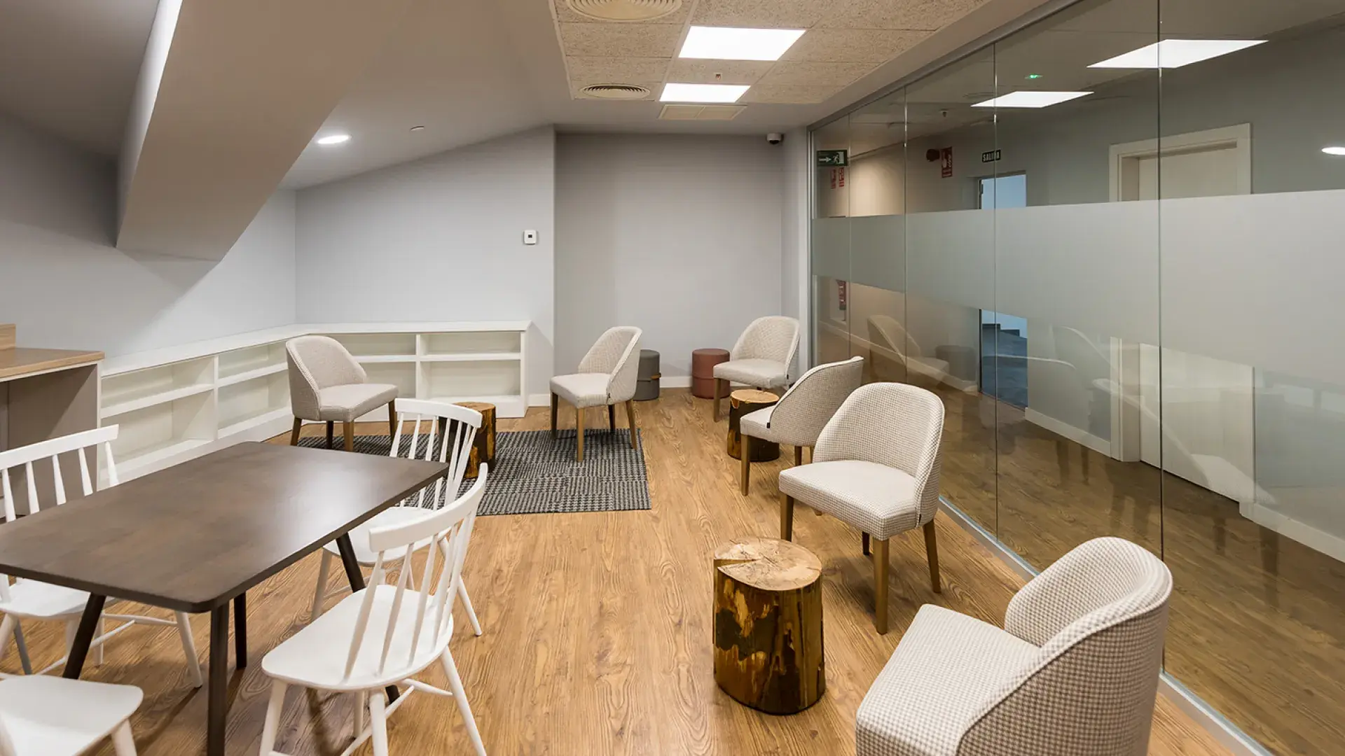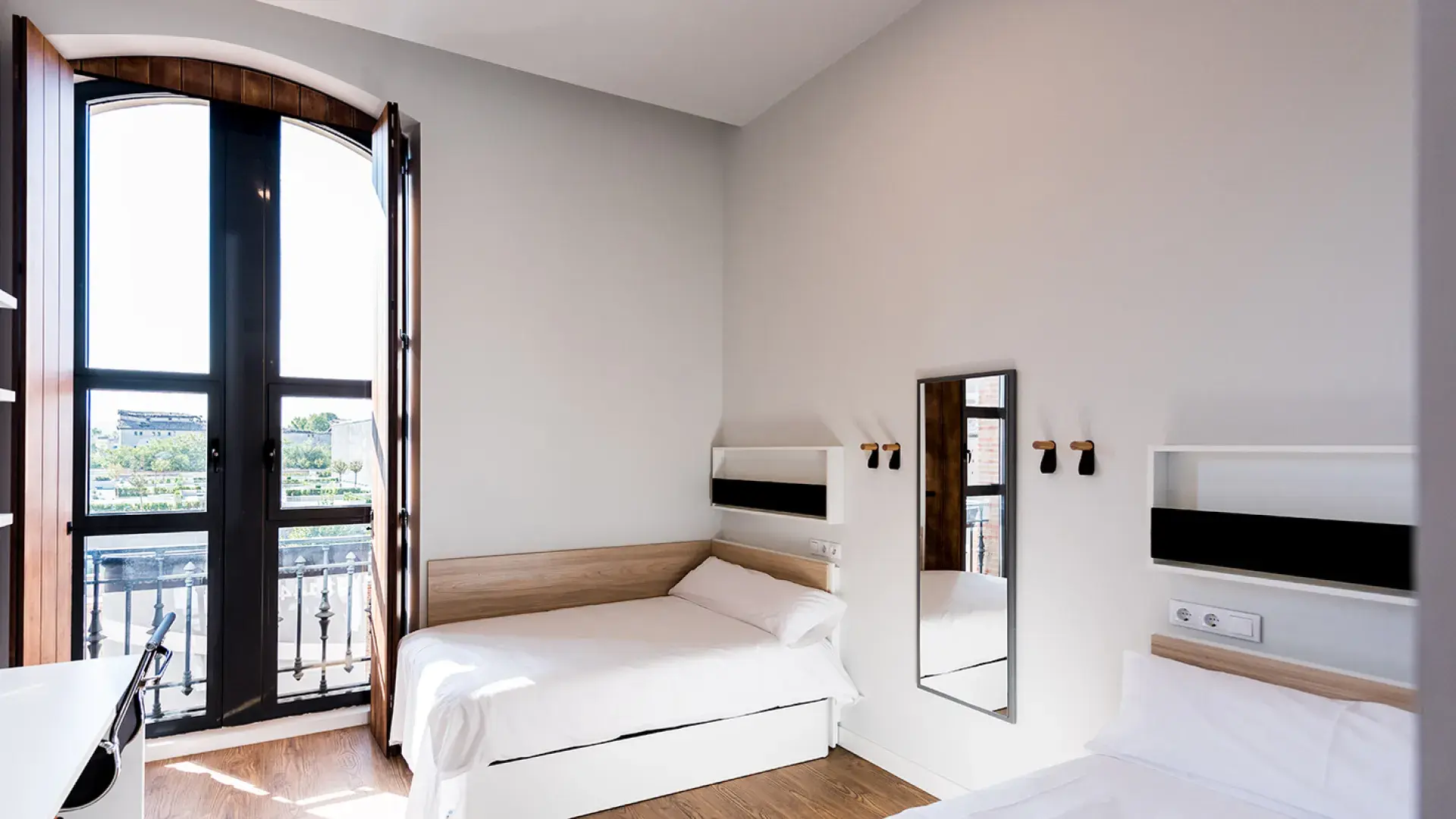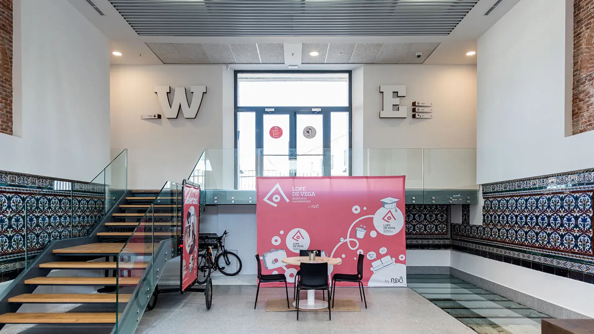 The building is made up of a "U" shaped body, with the main entrance from Colegios street in the centre. Inside, a private University Courtyard is formed, linked to the surrounding building, which will be used as a university residence and spaces linked to it: spaces for theatre and activities (seating area), cafeteria terrace, relaxation area, outdoor activities area. Building I, the former riding school, has also been recovered as a building to house community activities: gymnasium, multi-purpose court and facilities and services rooms. The aim is to give this space a certain flexibility.