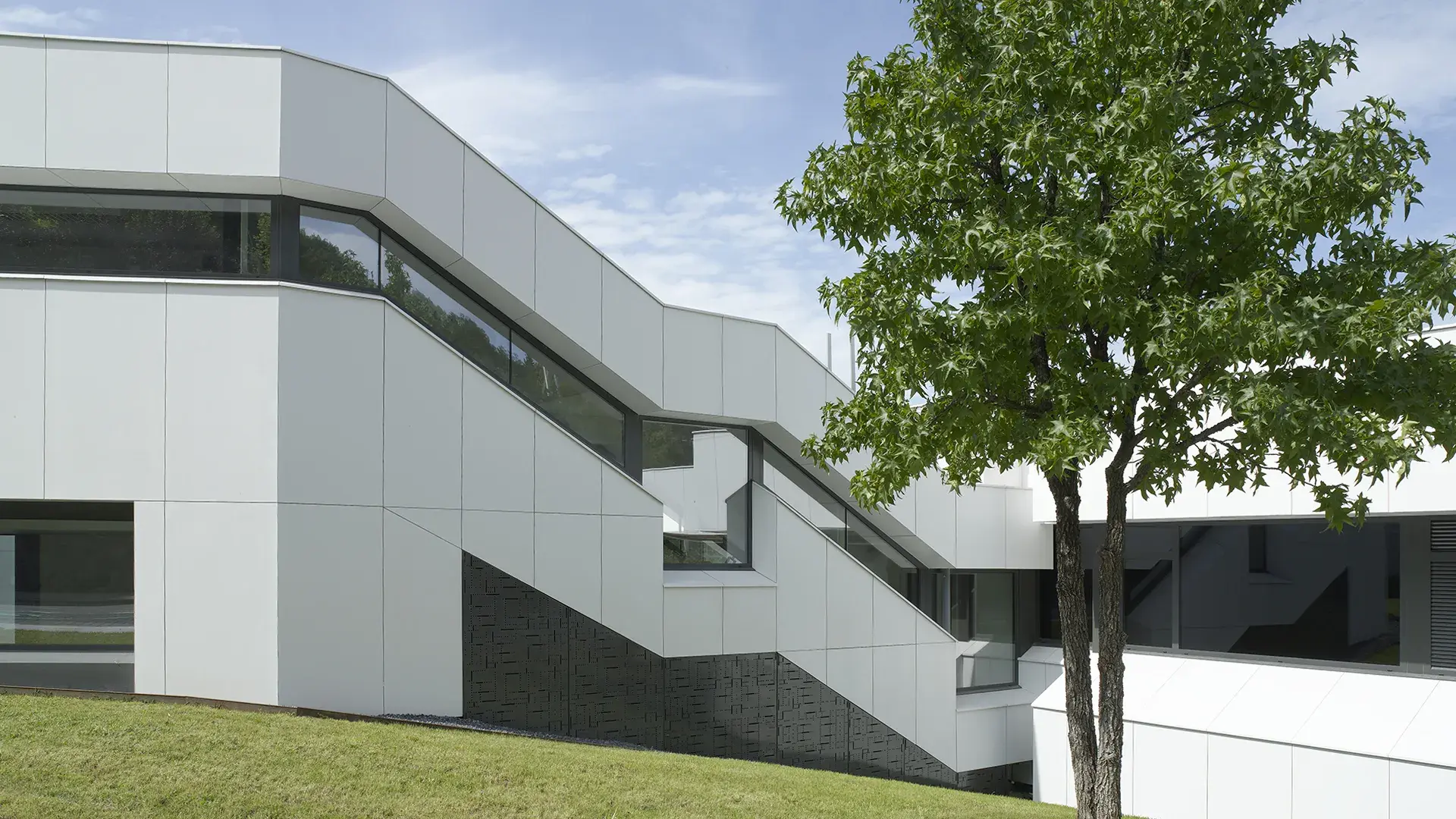 ULMA Arcchuitectural Solutions, por su parte, ha suministrado a IKERLAN los materiales más novedosos para el recubrimiento de la fachada, proporcionando soluciones técnicas que se ajustan a las geometrías complejas del edificio, todo un reto para la empresa oñatiarra. Se ha dado cobertura a 6.220 m2 de fachada integrando un sistema de fachada ventilada con polímeros de gran complejidad para esta tipología formal que incluye aislamiento térmico y acústico permitiendo mejorar la clasificación energética al D.