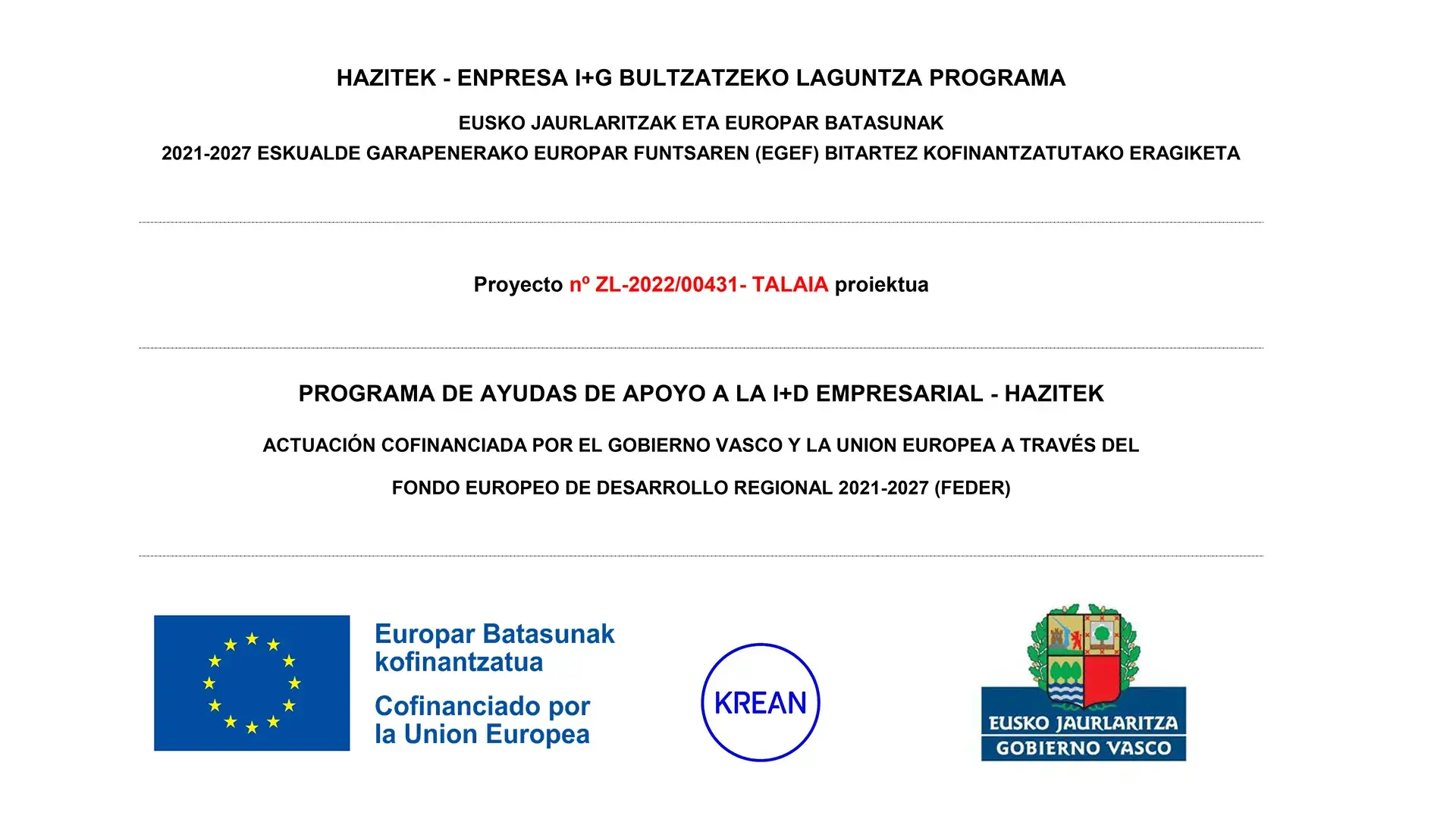 HAZITEK es el programa de ayudas de apoyo a la I+D empresaria, cofinanciada por el Gobierno Vasco y la Unión Europea a través del Fondo Europeo de Desarrollo Regional 2021-2027.