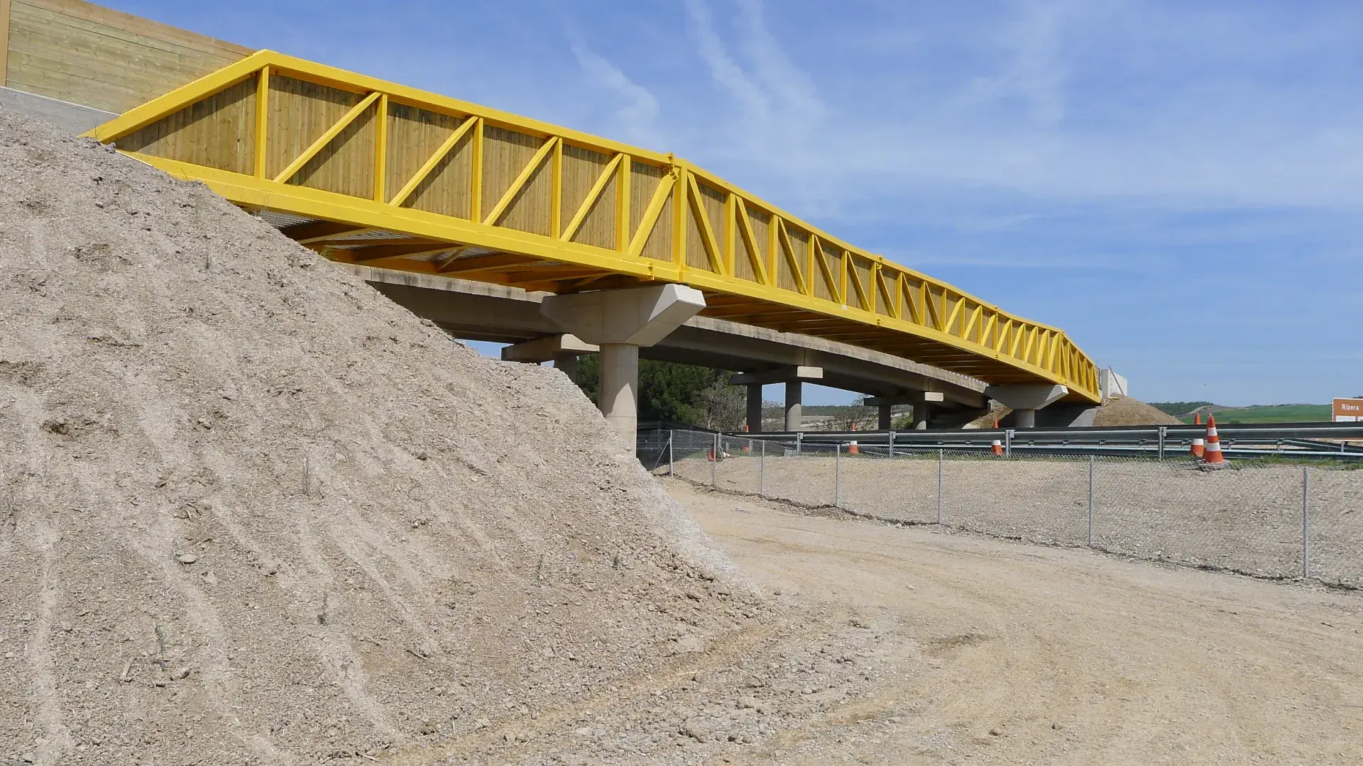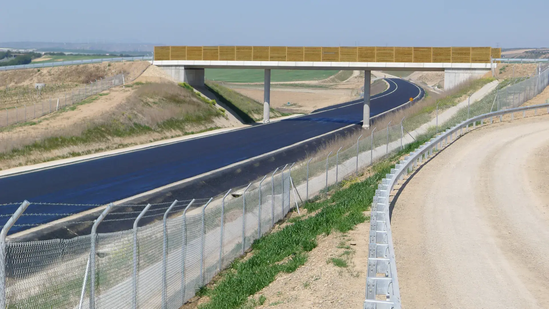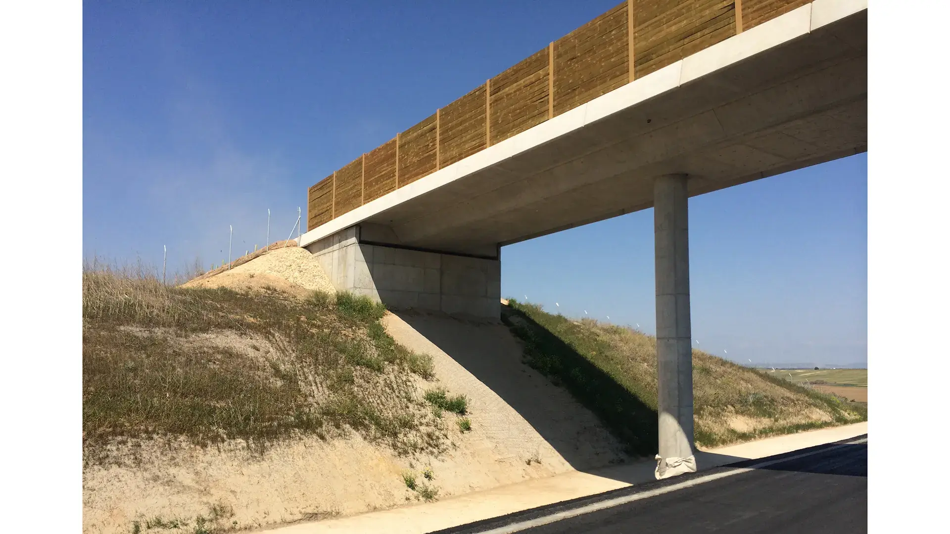 Asimismo, se han ejecutado dos pasos superiores, uno en el P.K. 109+120 sobre la LAV, y el otro sobre la autopista AP-15 a la altura del P.K. de la LAV 114+070, para el paso exclusivo de fauna, ejecutado paralelamente al paso existente sobre la AP-15.