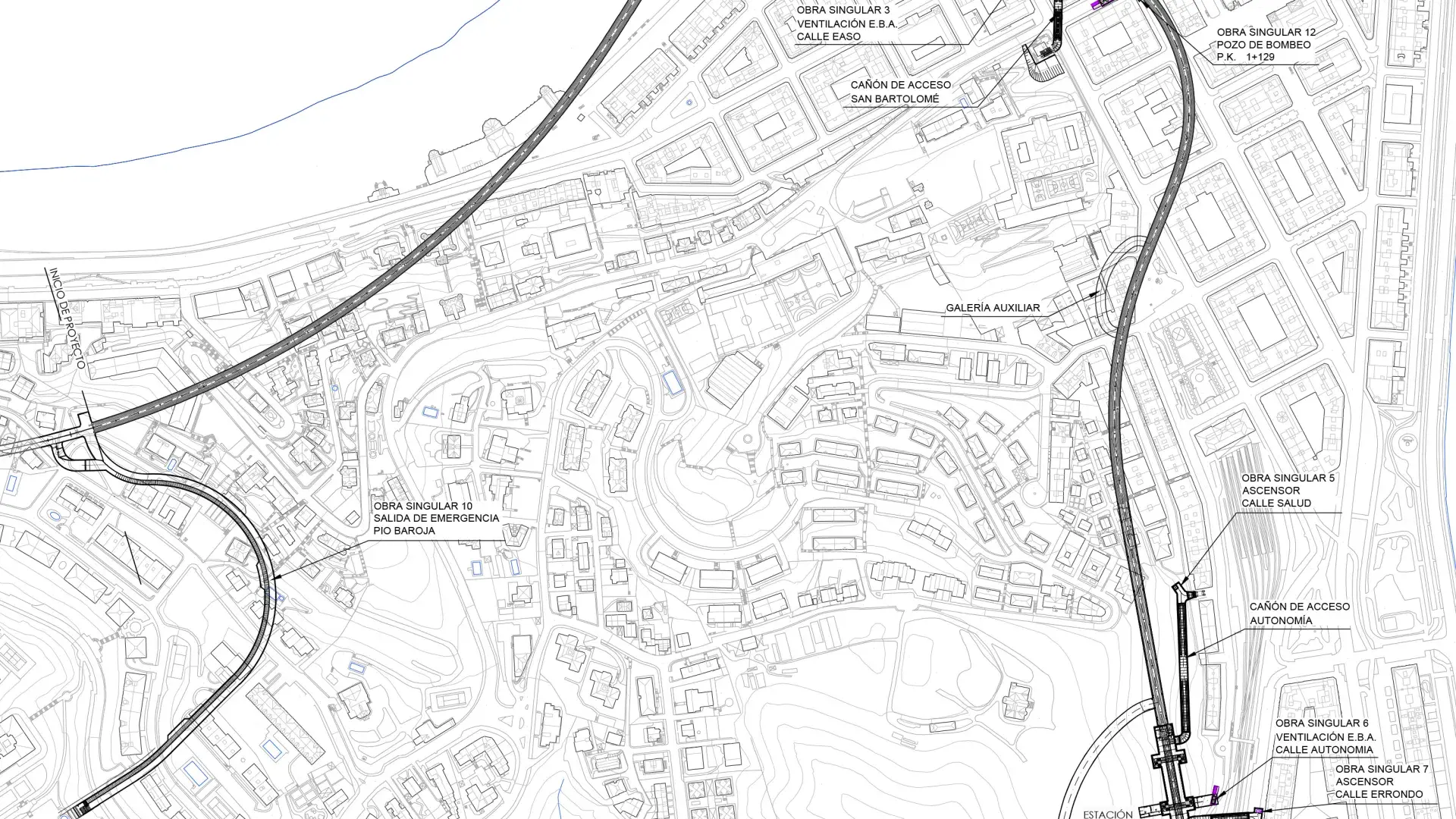 El trazado busca una solución óptima entre las dos principales variables que lo condicionan, por una parte, la necesidad de lograr una inserción urbana de estaciones que pueda captar la demanda de viajeros prevista; y por otro, la necesidad de que su trazado en alzado esté siempre suficientemente encajado en el macizo rocoso, de forma que sea viable su ejecución por métodos mineros.