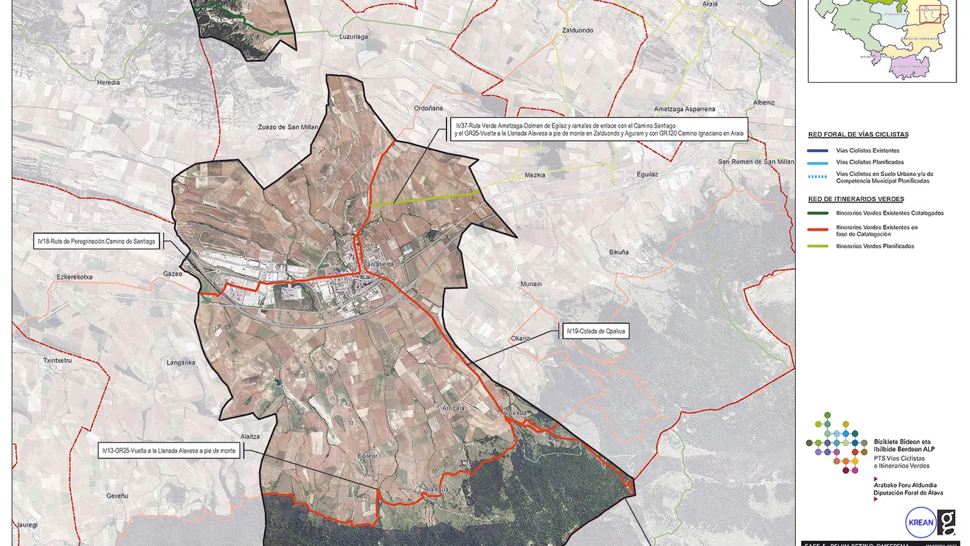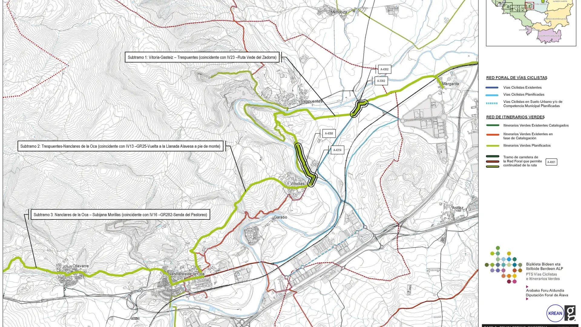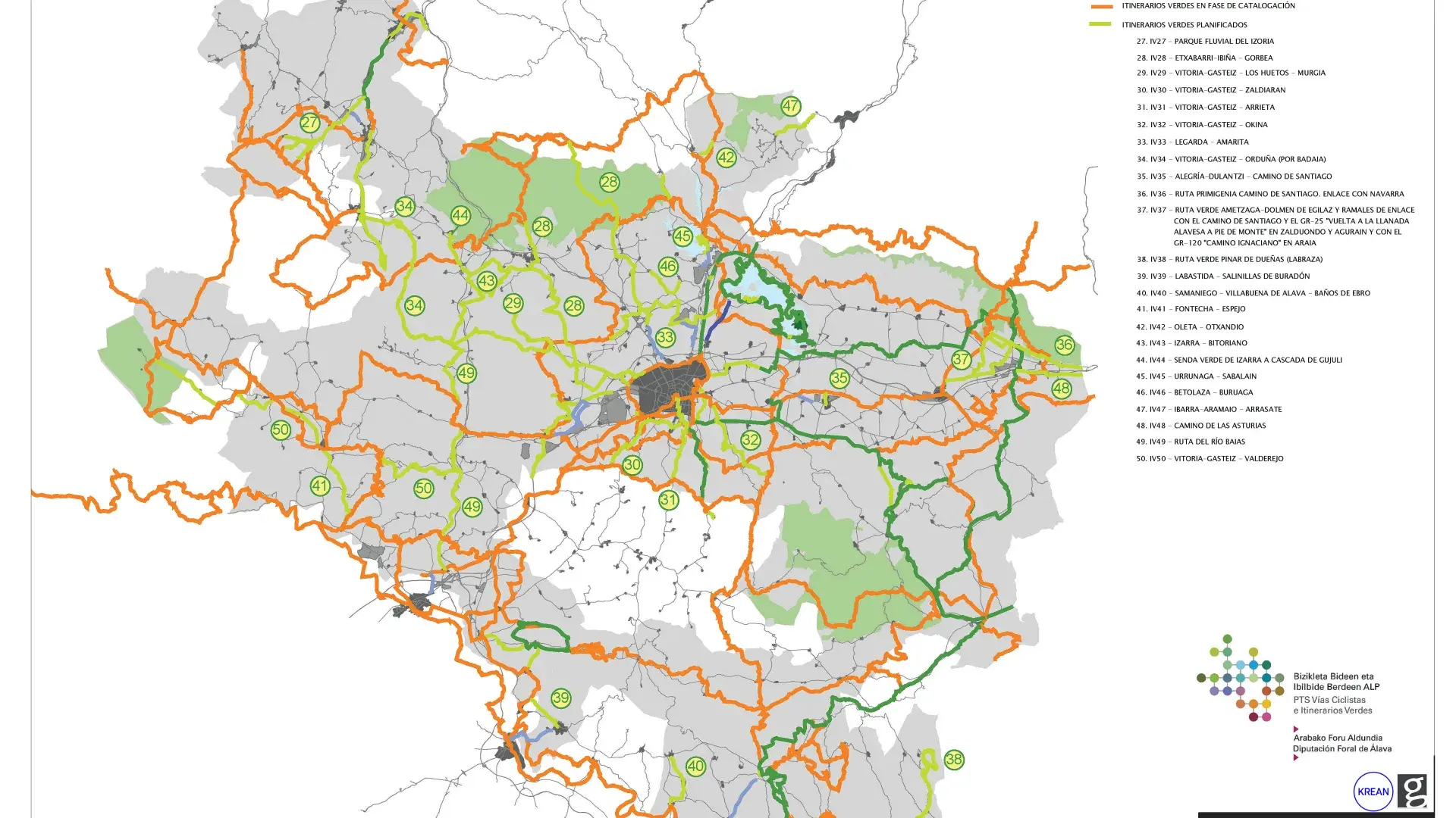 El PTS de Vías Ciclistas e Itinerarios verdes de Álava constituye un documento de ordenación territorial promovido por el Servicio de Ordenación del Territorio y Urbanismo de la Diputación Foral de Alava, con Asistencia Técnica de KREAN, en el que se planifica una doble red de vías ciclistas e itinerarios verdes que estructuran todo el territorio alavés.
