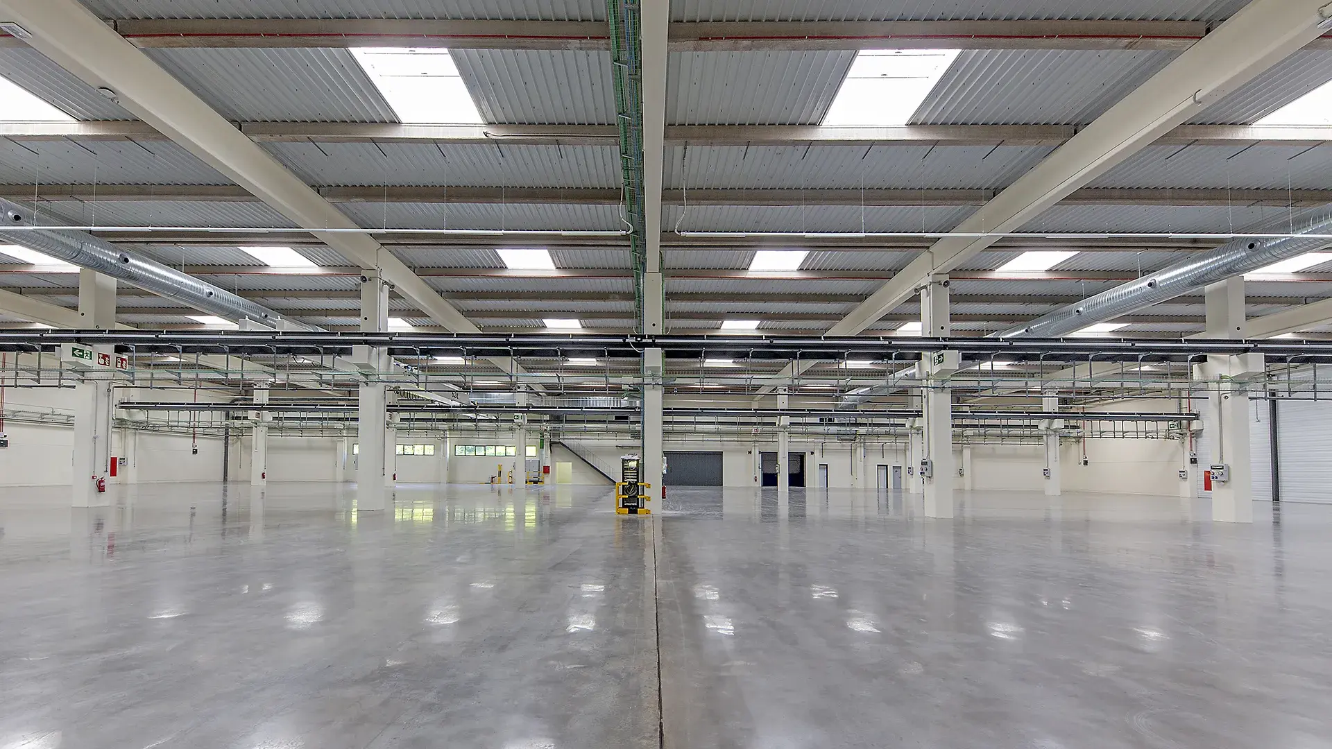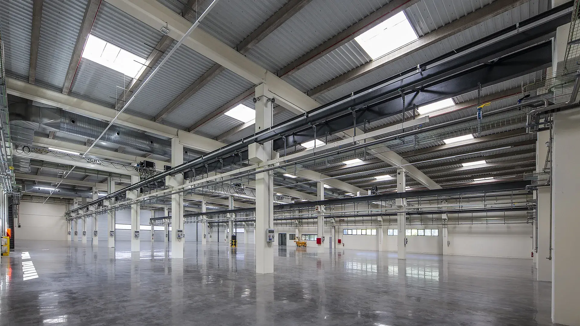 El edificio se ha proyectado en dos fases. El conjunto de la edificación, en esta primera fase ahora finalizada, de 9.823 m² construidos, se compone de dos plantas y tres volúmenes diferenciados, un volumen principal de 8.500 m² que se corresponde con el área de fabricación y montaje y dos volúmenes menores, uno destinado a oficinas y vestuarios y el otro a locales técnicos y otros usos auxiliares, y que se adosan al volumen principal por los lados noreste y suroeste respectivamente.