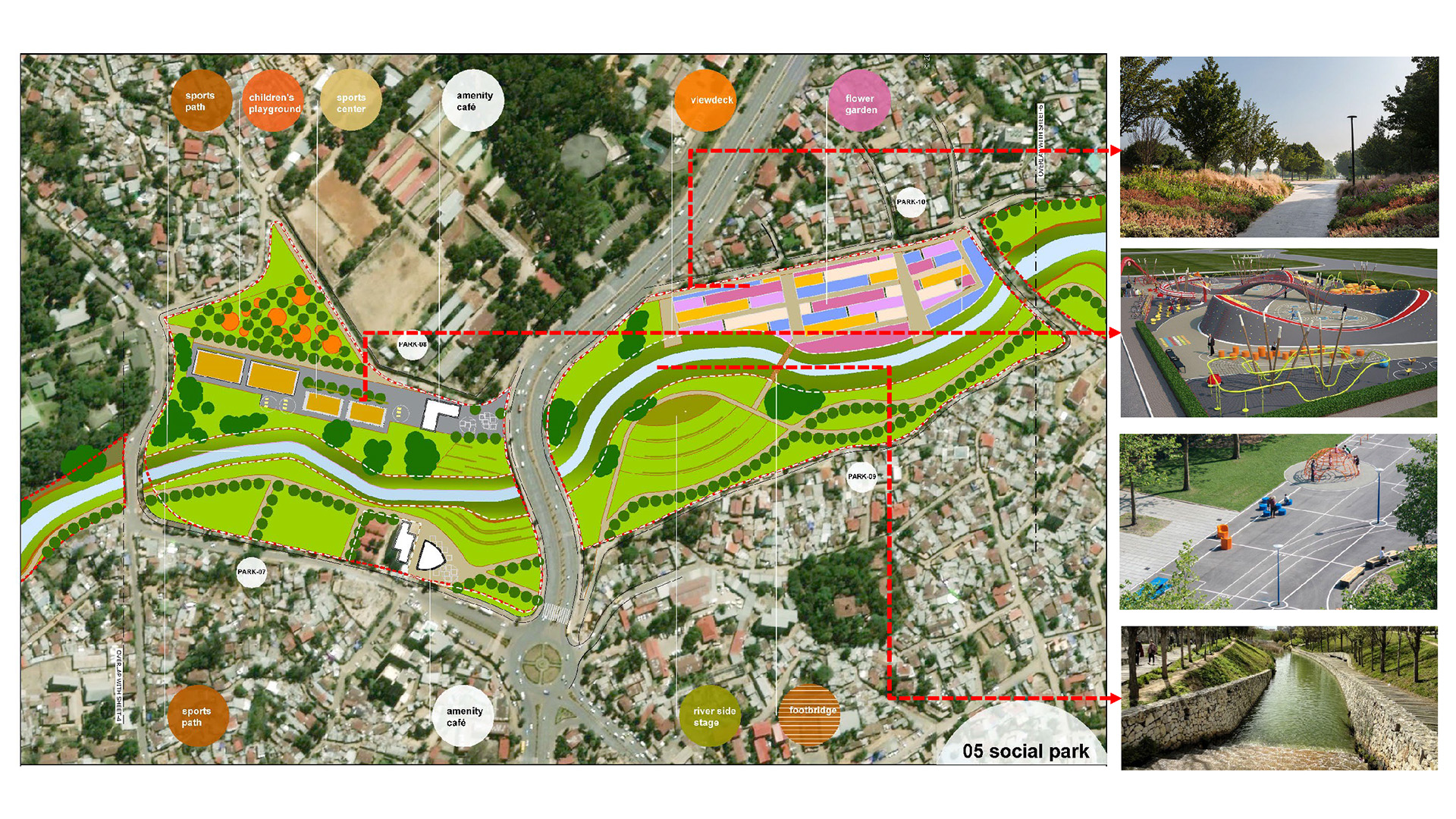 El Master Plan crea un borde público a lo largo del río en el tramo denominado IP08. De este modo, el frente fluvial planificado se extiende hasta una longitud de 6,4 km dentro de la ciudad en ambas orillas. El Master Plan ordena un nuevo frente fluvial como un gran espacio público que incluye una amplia red de parques, paseos fluviales, viviendas, mercados, instituciones culturales, instalaciones recreativas y desarrollos comerciales para la ciudad.