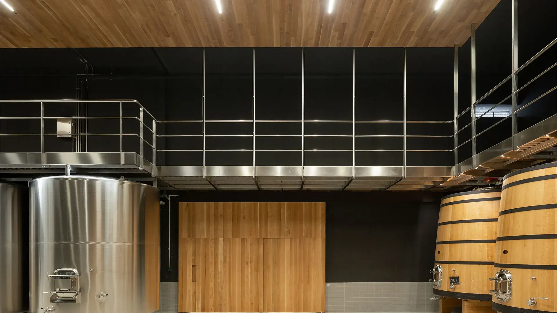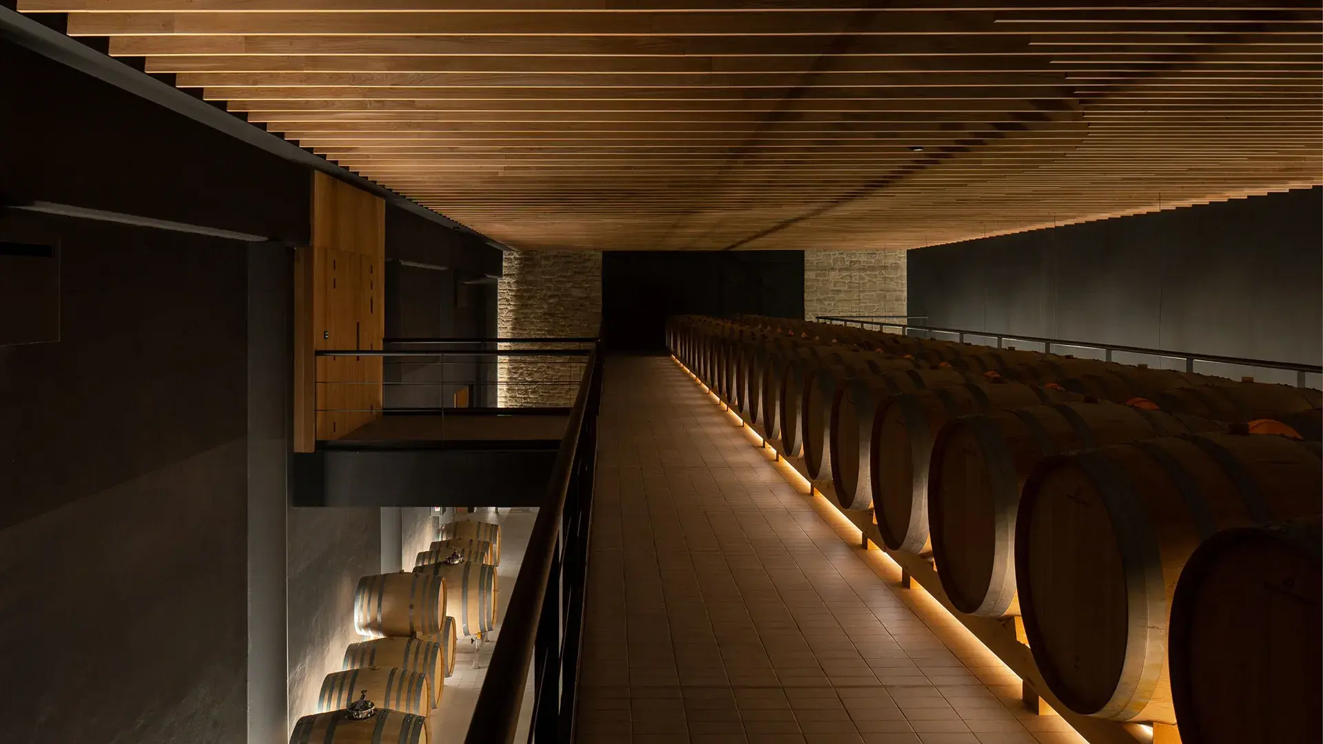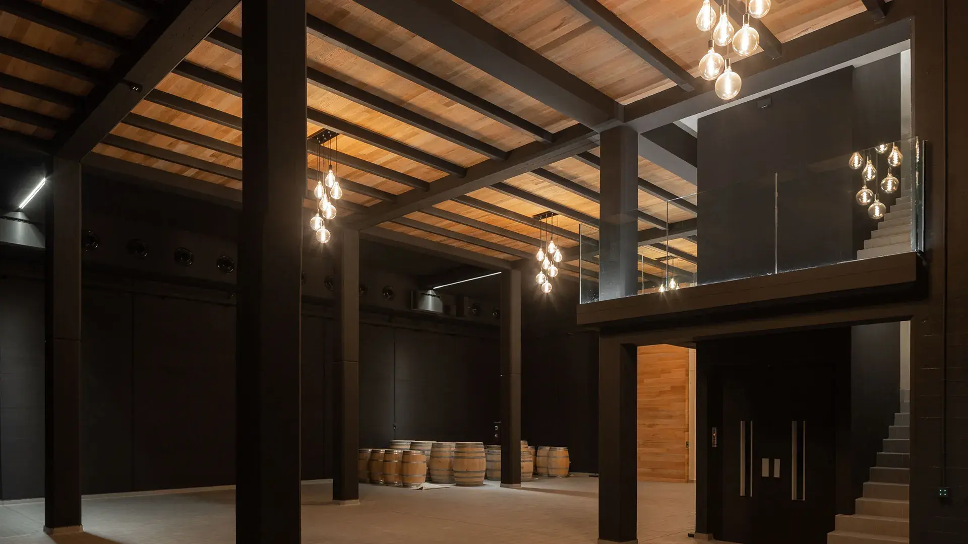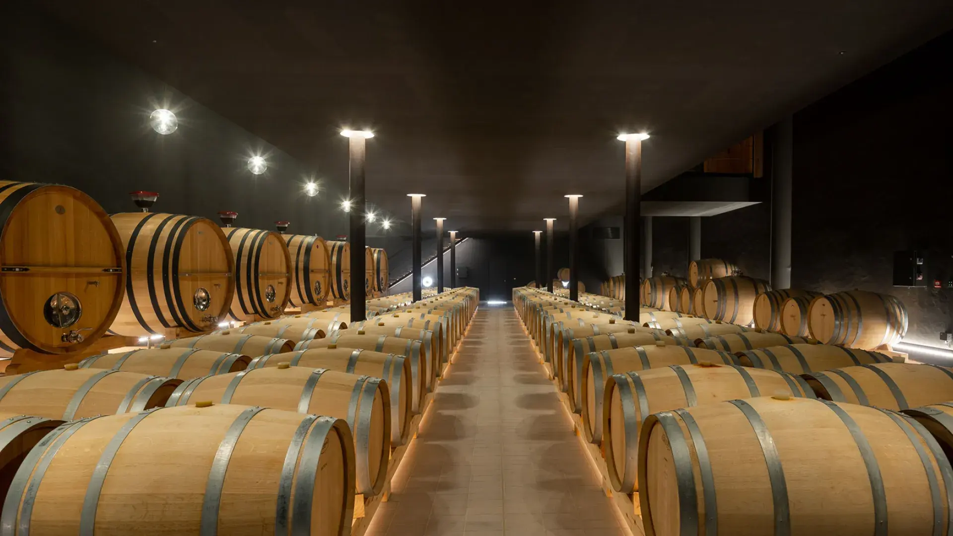 Hormigoizko biltegiak, egurrezko tinak, foudreak eta prentsa bertikal bat instalatu ditu kalitate goreneko ardoak lortzeko.