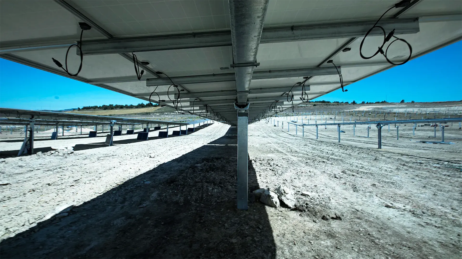 Bisita hau egiteko unean, obren bigarren fasea abian da jadanik, eta eguzki-panelei eusteko egituraren % 30 inguru eginda dago; beraz, eguzki-parkeak izango duen itxura bistaratzeko moduan gaude dagoeneko.