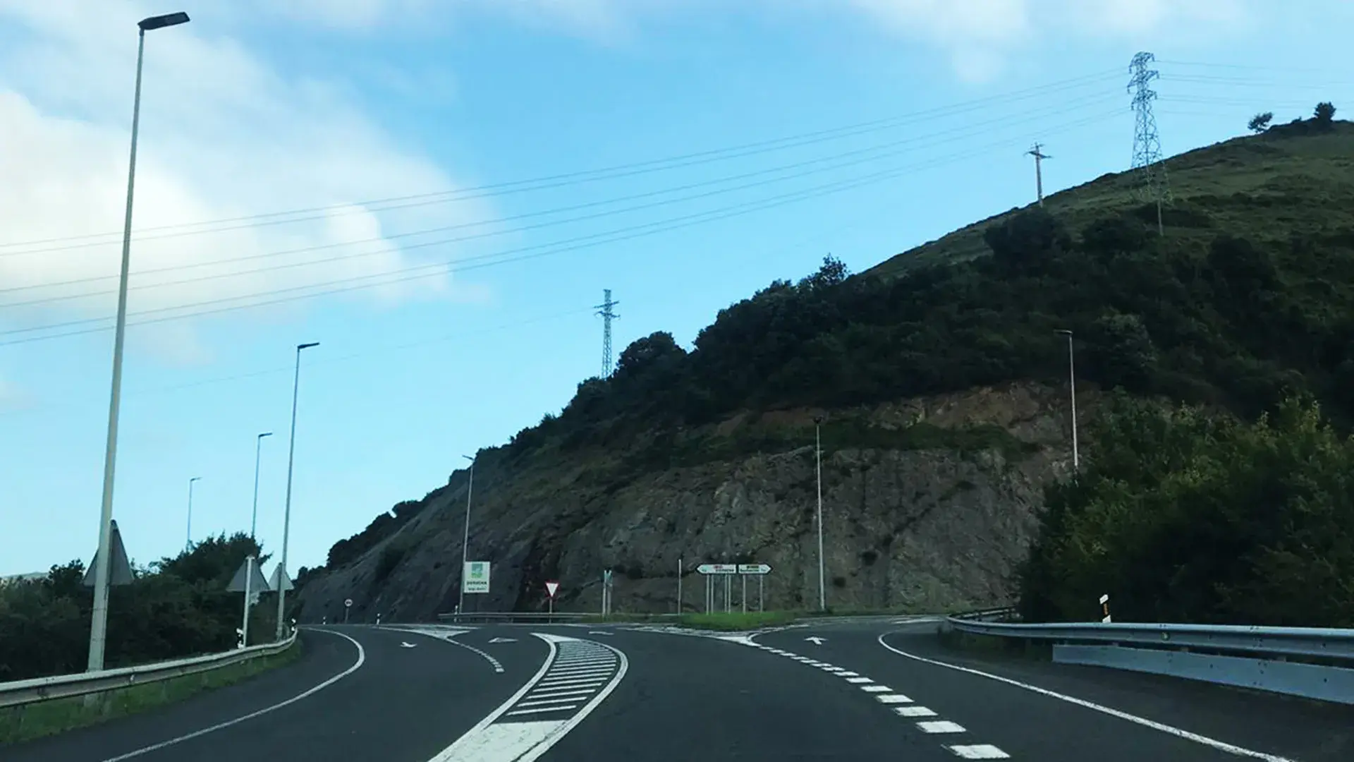 Goratutako biribilgunea bi fabrika-obren bidez diseinatuta dago: hormigoi postesatuzko lauza trinko triangeluar bat, "in situ" egina eta bi horma-bularretan bermatua. Oinplanoan trazadura kurbatua da eta 31.5m-ko erradio konstantea du. Taulak 15.40 m-ko zabalera konstantea eta % 2,07-2,5 arteko peralte aldakorra du luzera osoan.