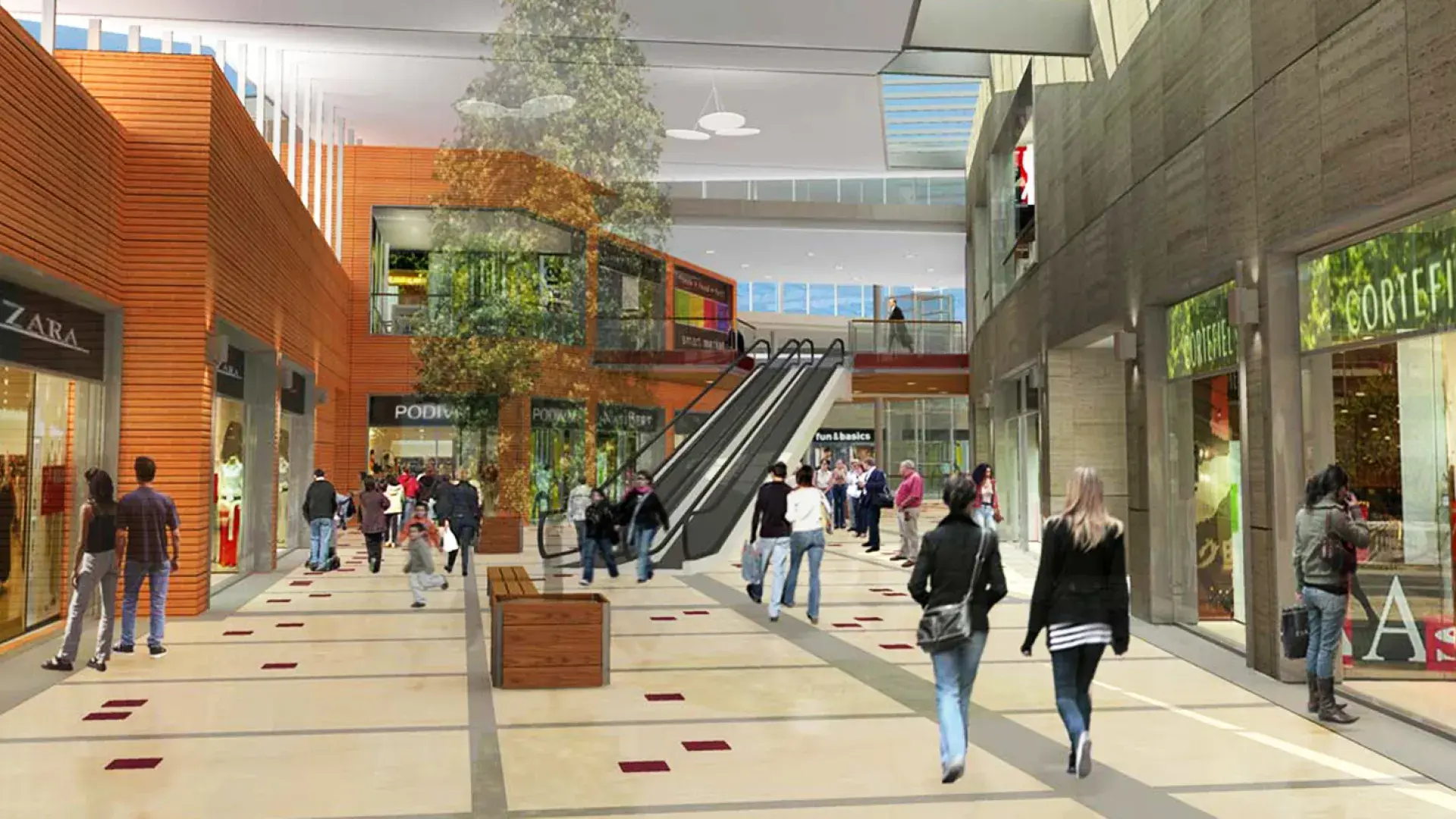 Merkataritza-azalera kota eta material desberdinetako bolumen-multzo gisa planteatzen da, antzeko erabileren arabera multzokatzen diren 98 lokalez osatua: hipermerkatua, jatetxeak, aisialdia, ehungintza eta zerbitzuak. Guneari irudi deigarria eta erakargarria ematen saiatu da, hiri-jardueraren gune garrantzitsua dela azpimarratzeko. Azalera handiko, altuera txikiko eta mendi-hegal baten goialdean kokatutako eraikina denez, malletako estalkiei protagonismoa ematea erabaki da. Itsas oihartzunekoak, zatikatuak eta tamaina handikoak planteatzen dira, eta guneko elementurik bereizgarriena bihurtzen dira. Bere muturrek, markesina bihurtzen diren hegal zabalekin, ikusleen sarrera-puntuak markatzen dituzte.